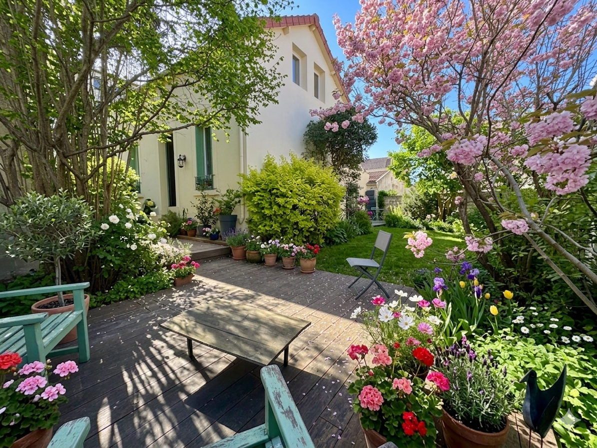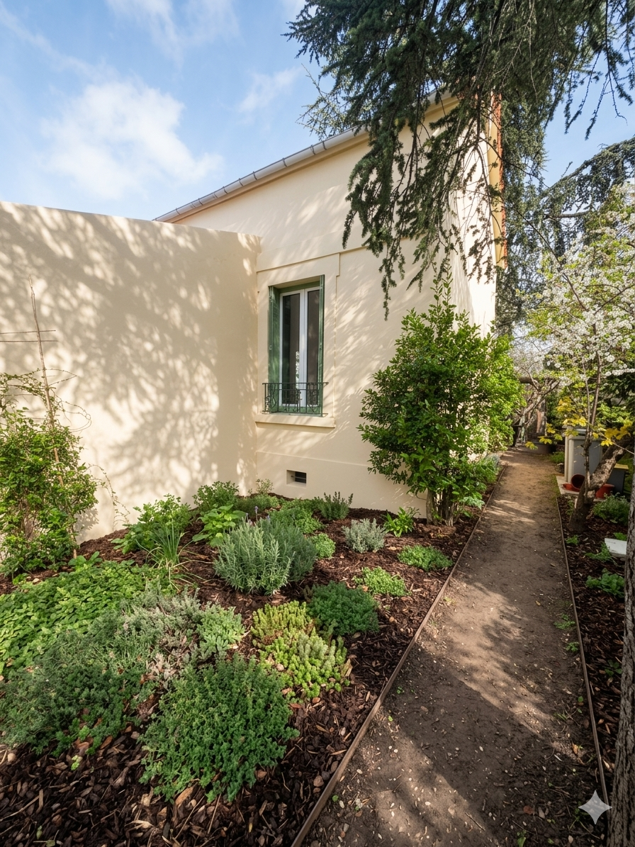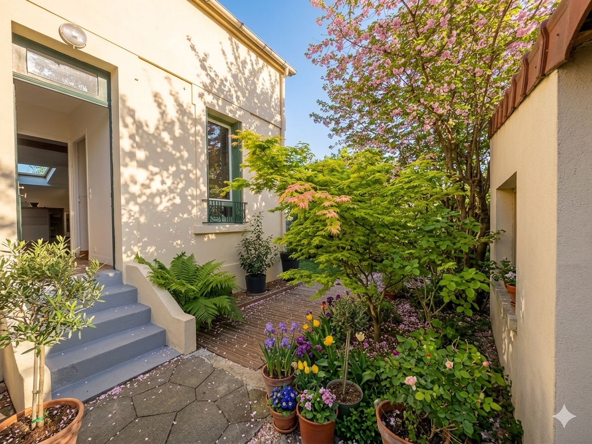 Maison pleine de charme, lumineuse avec un joli jardin et au calme. Un véritable coup de cœur, derrière sa façade discrète se cache une maison chaleureuse et pleine de vie, où chaque espace a été pensé pour conjuguer confort, intimité et convivialité. Dès les premiers pas, on découvre une entrée avec de véritables carreaux de ciment, un WC, un séjour en L ouvert sur la salle à manger et un salon véritable cœur de la maison baigné de lumière avec son accès direct au jardin, idéal pour partager de beaux moments. La cuisine indépendante, fonctionnelle, pourra facilement évoluer selon vos envies. Un second salon, plus intimiste, vient compléter les espaces de réception et offre un cocon parfait pour se détendre. Le rez-de-chaussée propose également une chambre avec dressing et salle d’eau, permettant une vie de plain-pied très appréciable, ainsi qu’un espace bureau idéal pour le télétravail ou une activité indépendante. À l’étage, le charme se poursuit avec des volumes sous combles qui apportent une atmosphère douce et cosy. Vous y trouverez trois chambres, dont une chambre d’enfant, ainsi qu’une salle de bains avec espace machine et un WC séparé. À l’extérieur, la maison réserve une belle surprise : plusieurs terrasses pour suivre le soleil ou l’ombre l’été, une dépendance aménagée, parfaite pour un bureau indépendant, un espace invités ou une chambre d’appoint. Enfin, un sous-sol partiel, ainsi qu’un garage, viennent compléter ce bien et offrent un confort de vie rare avec de nombreuses possibilités de rangement. Une maison pleine de charme, où l’on se projette instantanément… à découvrir sans tarder.